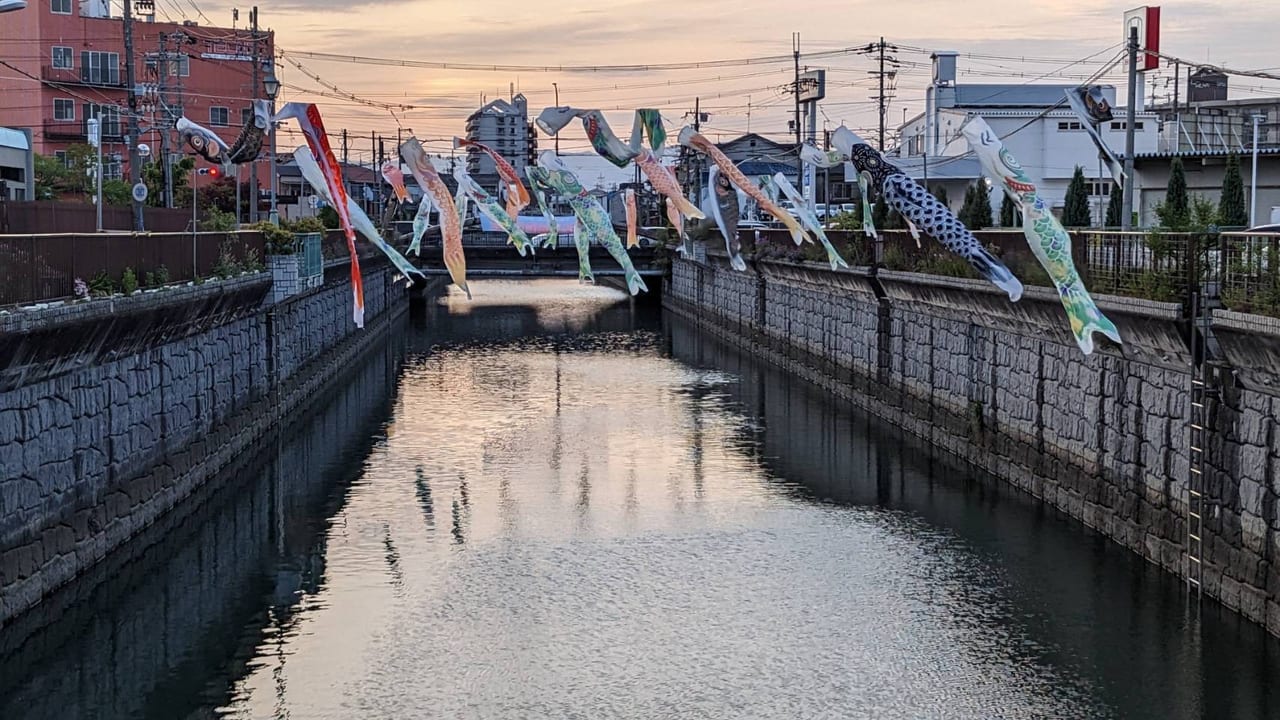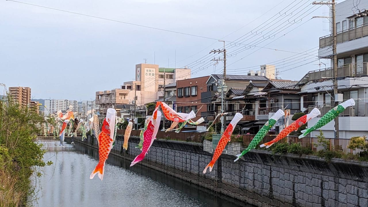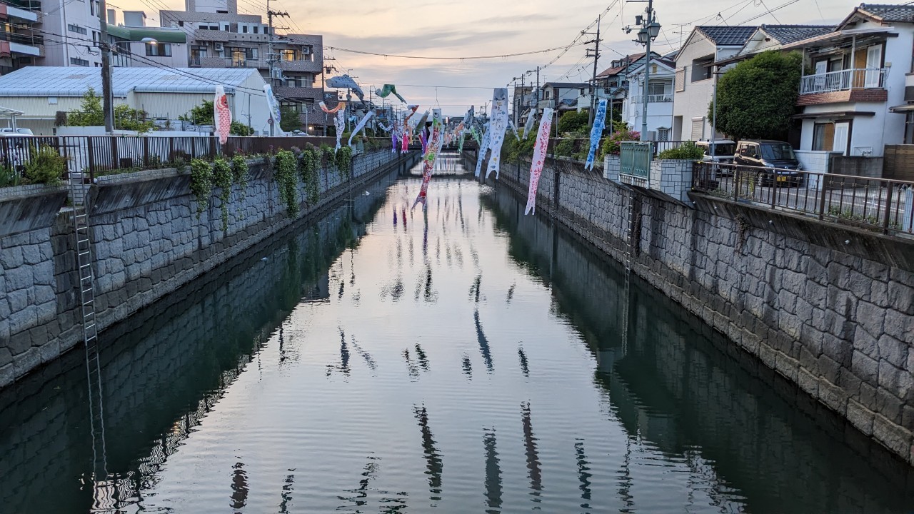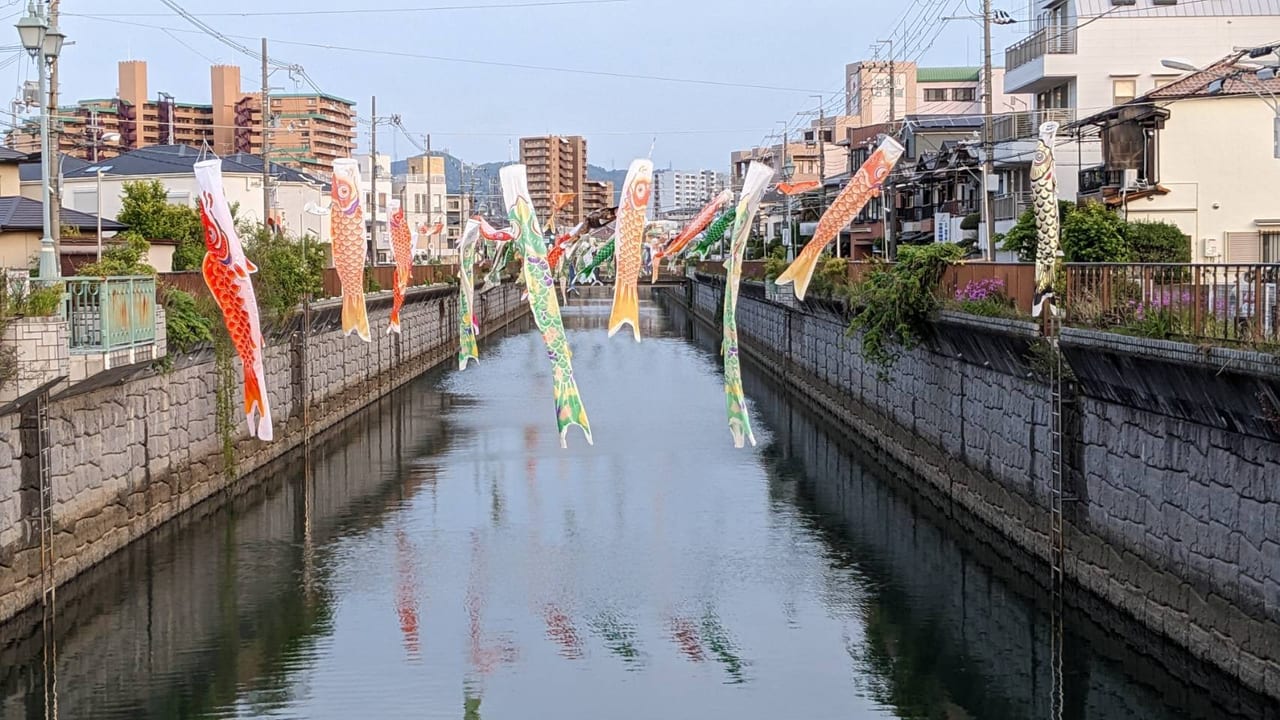 【寝屋川市】5月5日はこどもの日。子どもたちの健やかな成長を願って石津導水路に泳ぐこいのぼり。