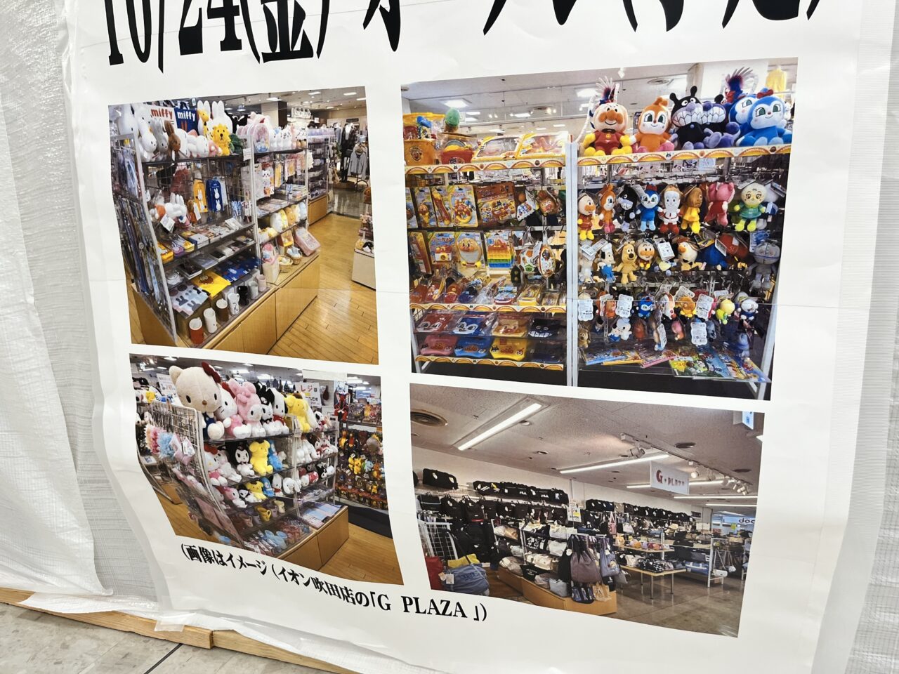 高槻市萩之庄にあるイオン高槻店の2Fに、ファンシー雑貨店の「G PLAZA」が2025年10月24日(金)オープン予定です。