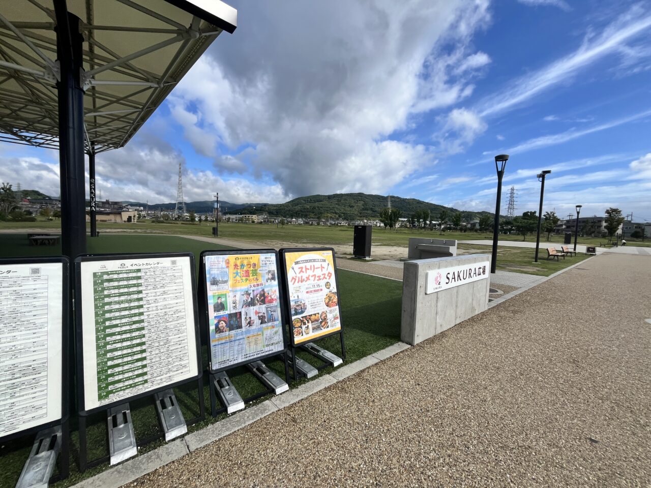 場所は、安満遺跡公園のSAKURA広場と、東の広場です。こちらの場所は、「スターバックス コーヒー 高槻安満遺跡公園店」のすぐそばです。