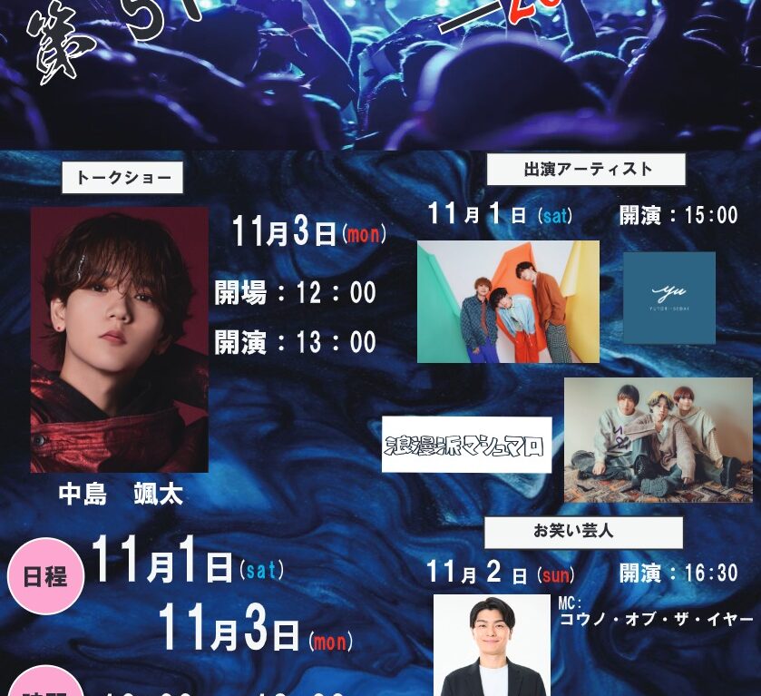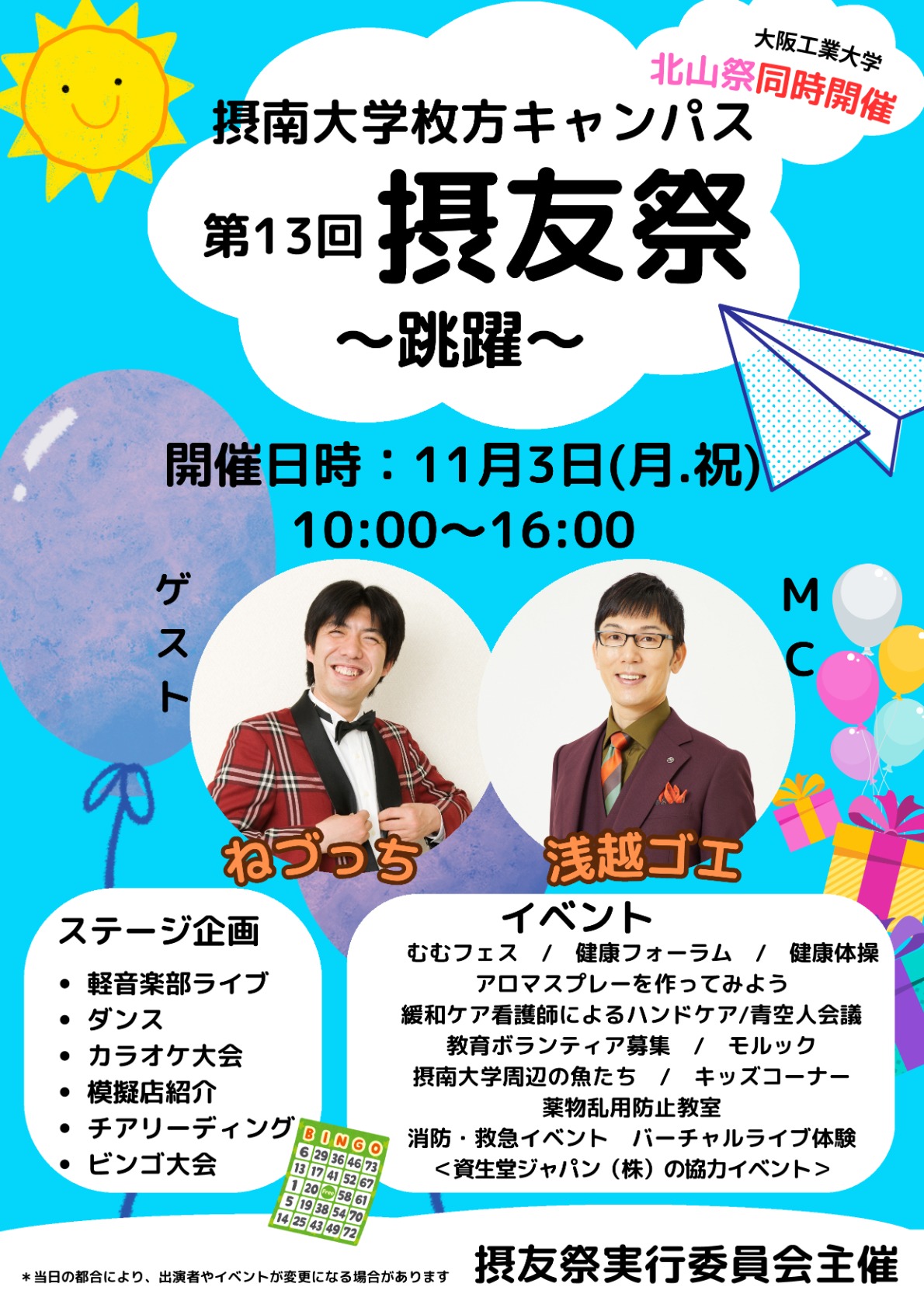【寝屋川市】 11月1日~3日「摂大祭」「摂友祭」を開催 ! 昨年過去最多の1万人が来場した熱気を再び!中島 颯太、ねづっちなど豪華ゲストが出演!