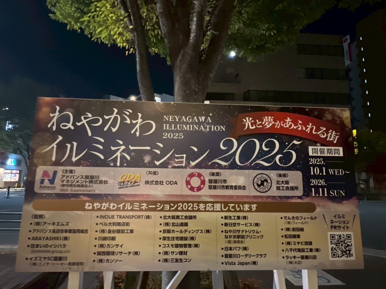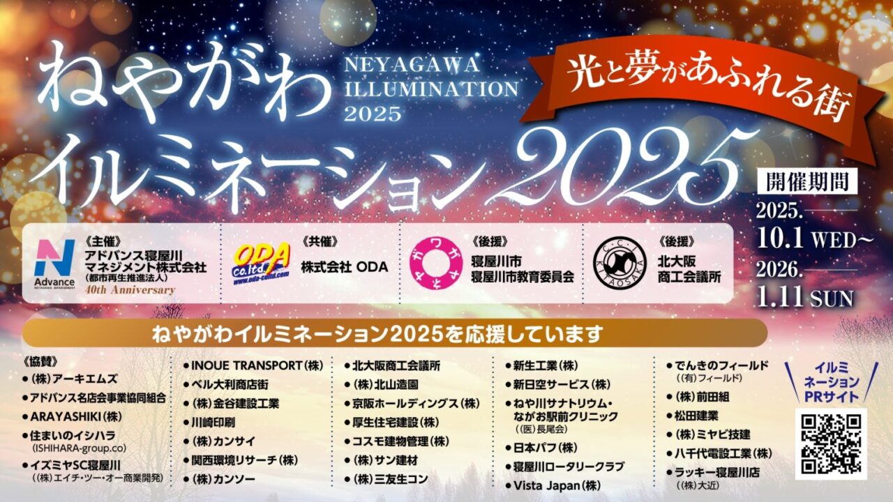 2025年10月1日(水)から2026年1月11日(日)まで『ねやがわイルミネーション2025』~光と夢があふれる街~が開催されています。