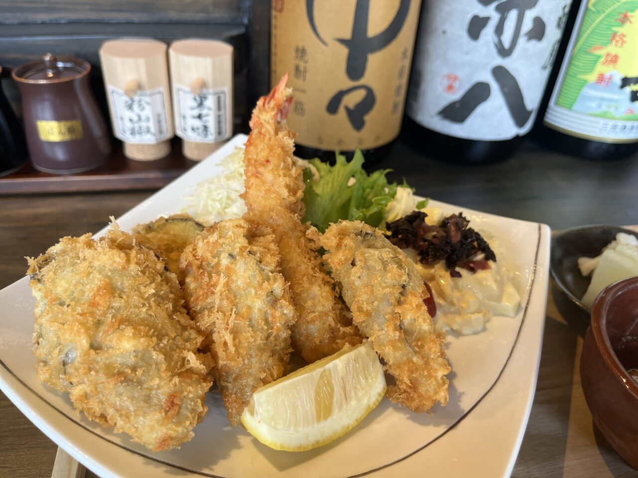 牡蠣はサクサクの衣で食べ応えのあるプリプリトロトロの食感と、ミルキーで濃厚な旨味が口の中に広がります。海老もプリプリでとても美味しかったです。