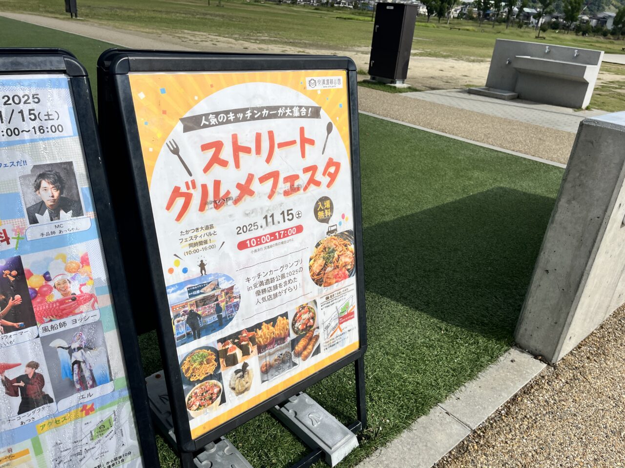 ストリートグルメフェスタは、キッチンカーフランプリin安満遺跡公園2025の優勝店舗を含めた人気店がずらりと並ぶグルメイベントです。たかつき大道芸フェステイバルと同時開催されていて、入場無料の親子で楽しめるイベントですよ。