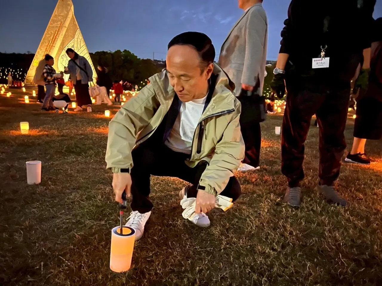 広瀬けいすけ市長も自ら、点火用のライターを手に、ランタンに火を灯しておられました。