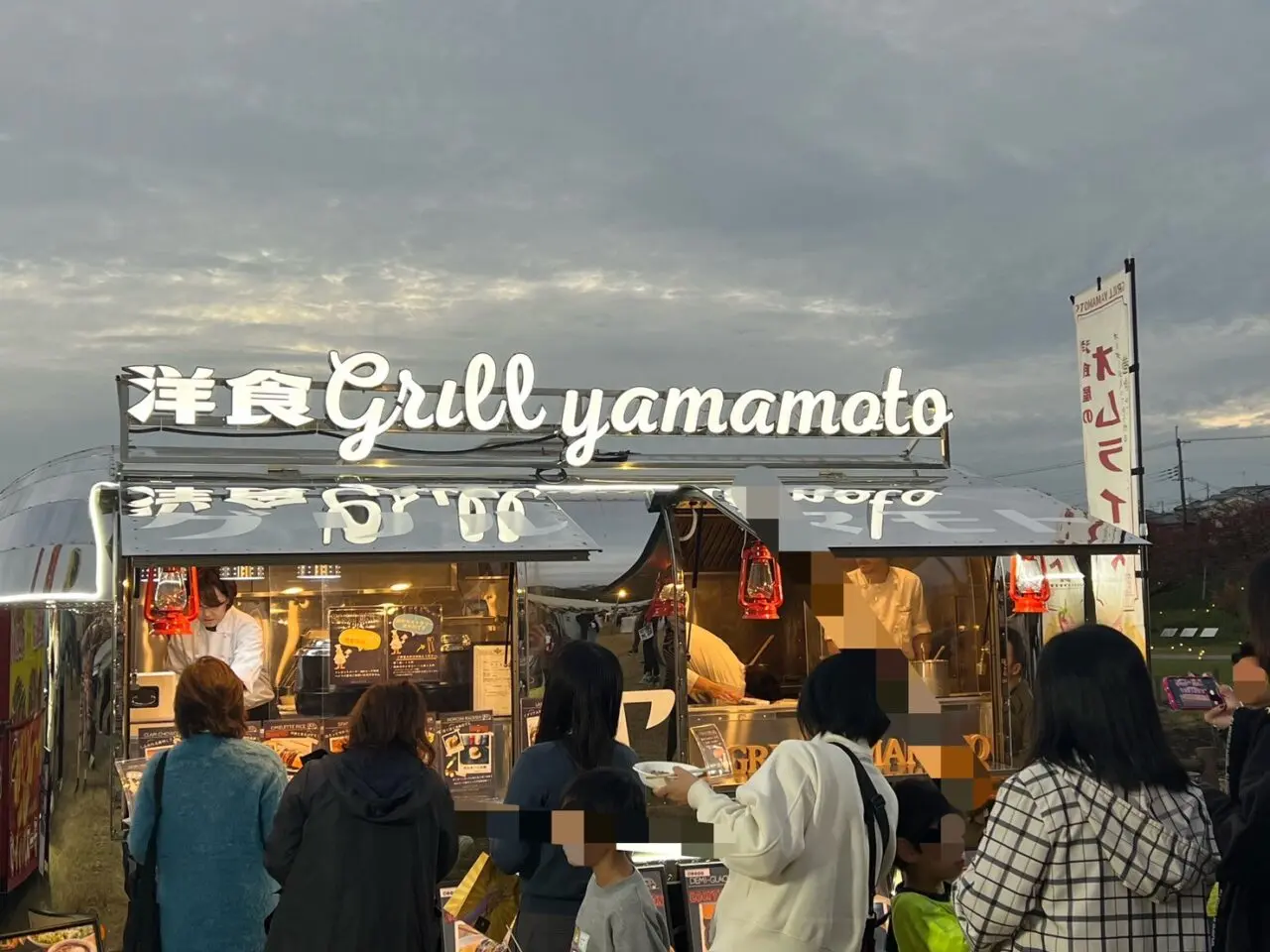筆者が17時に到着した時には、まだ飲食ブースが始まったばかりで、行列も少なくて購入可能だったのですが、辺りが暗くなり、点灯開始の18時過ぎには、長蛇の列となっていました。