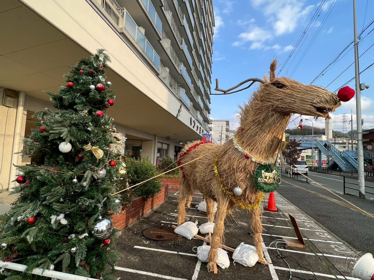 今回、初となるJR寝屋川公園駅前に、クリスマスツリーとともに展示されています。