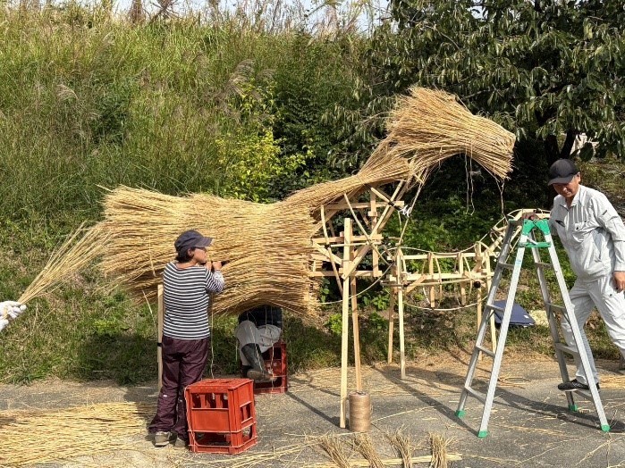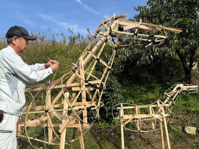 令和8年の干支「午(うま)」のとんどは 、とんど焼き開催地である高倉地区で作られました。