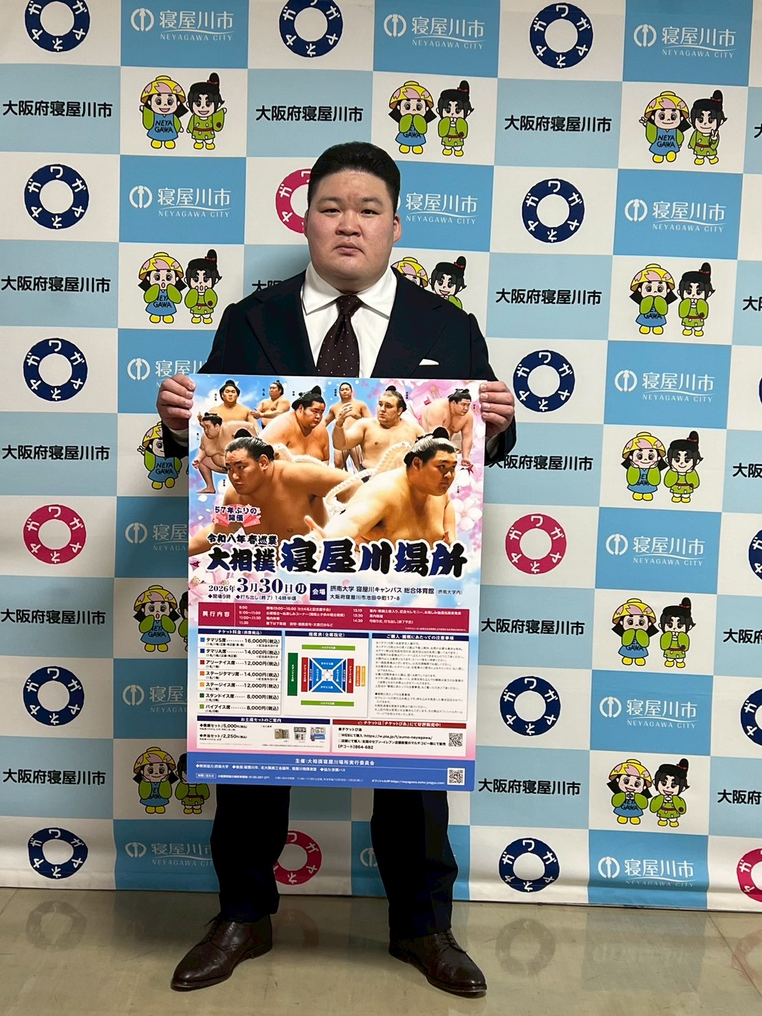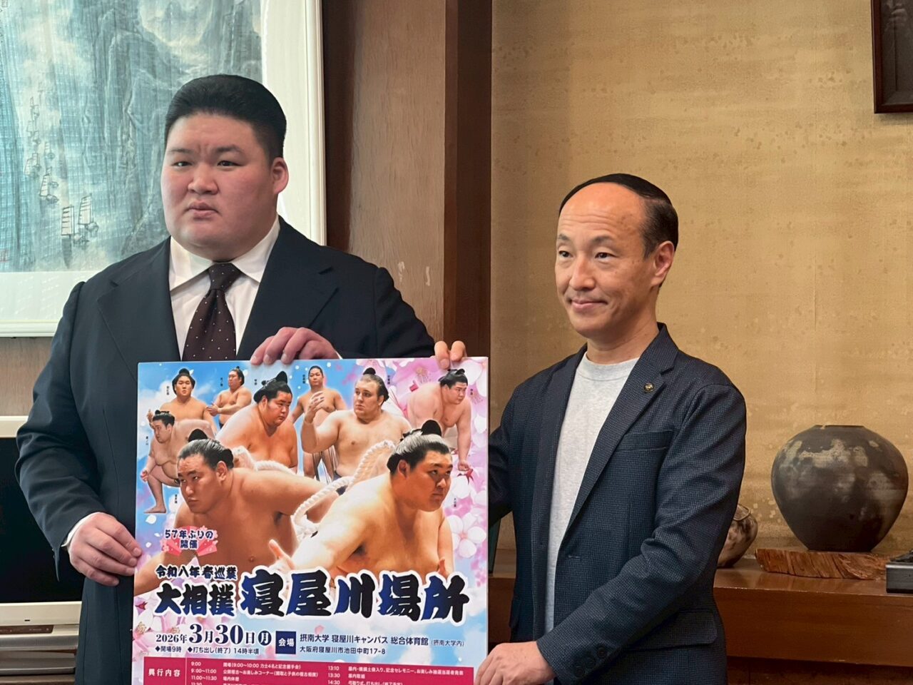 令和7年12月15日、来春、57年ぶりに大相撲寝屋川場所」が開催されることから、武隈親方(元大関豪栄道)が広瀬けいすけ市長を表敬訪問されました。