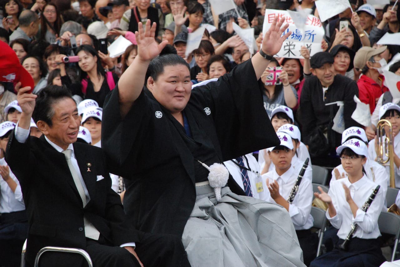 大関昇進や全勝優勝を果たし、寝屋川市のさわやかロードでパレードが行われました。