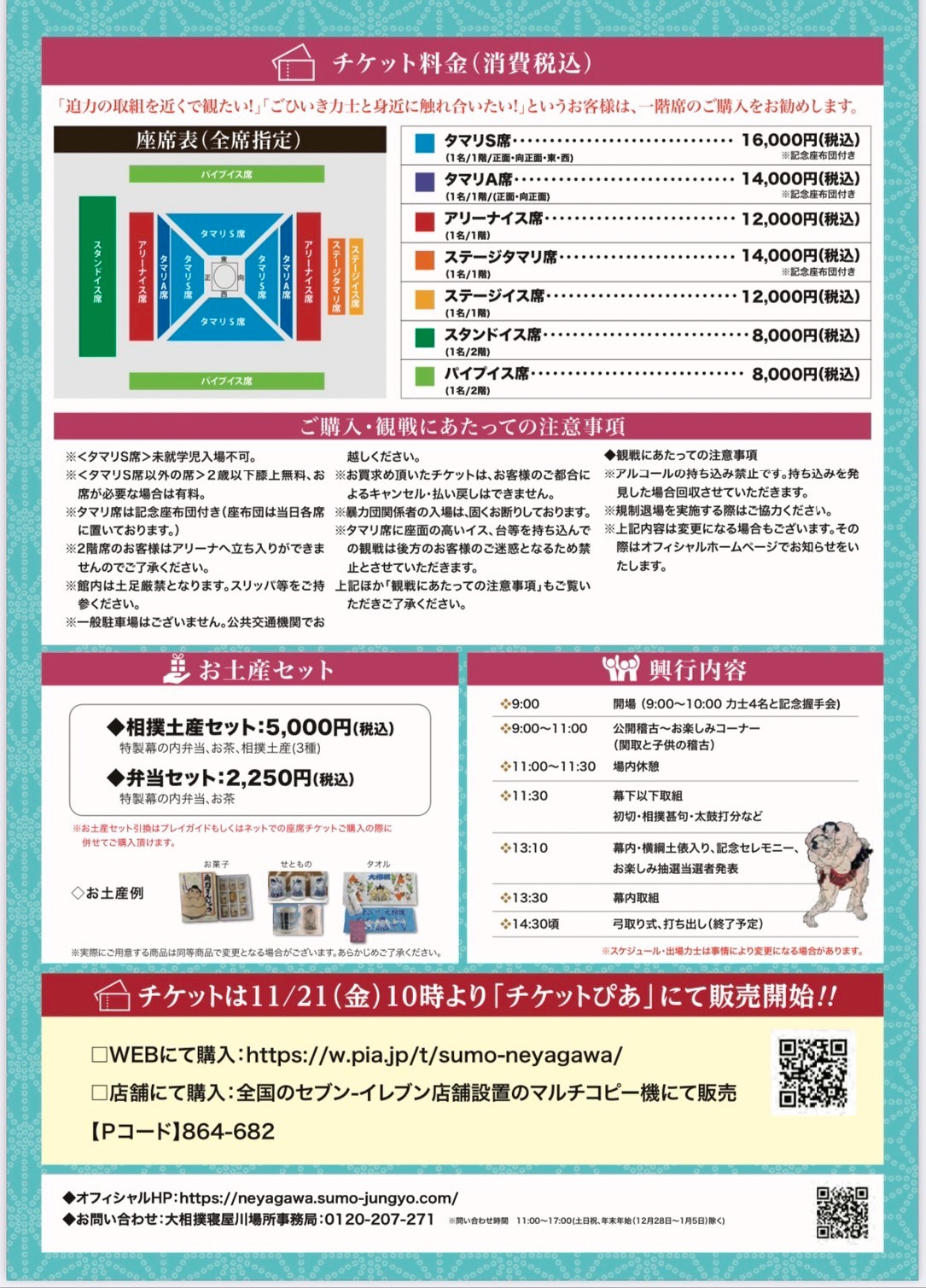 寝屋川出身の力士の宇良も人気があり、57年ぶりの寝屋川場所ということで、盛り上がること間違いなしですね。
