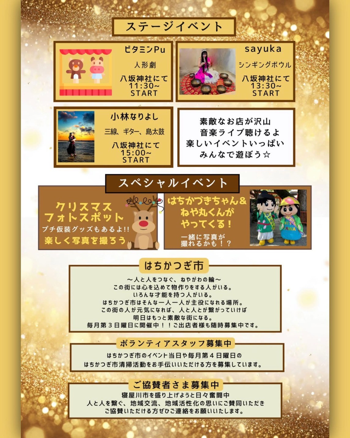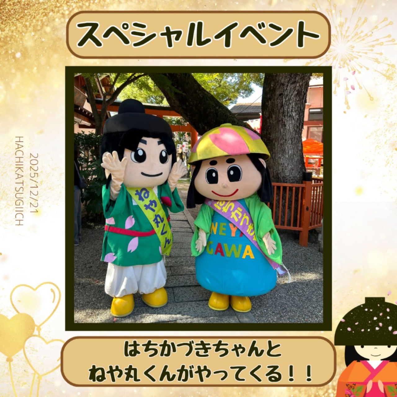 【寝屋川市】12月21日は、はちかつぎ市。クリスマスにちなんだフォトスポットもあり! はちかづきちゃんとねや丸くんも登場!