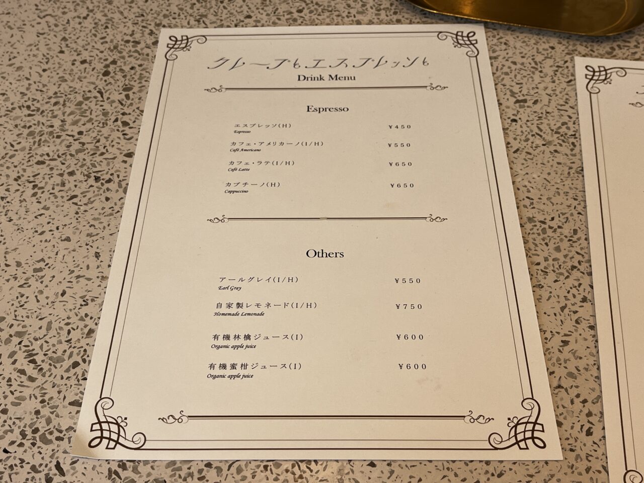 またクレープだけでなくエスプレッソや紅茶、有機ジュースなども楽しむことができます。