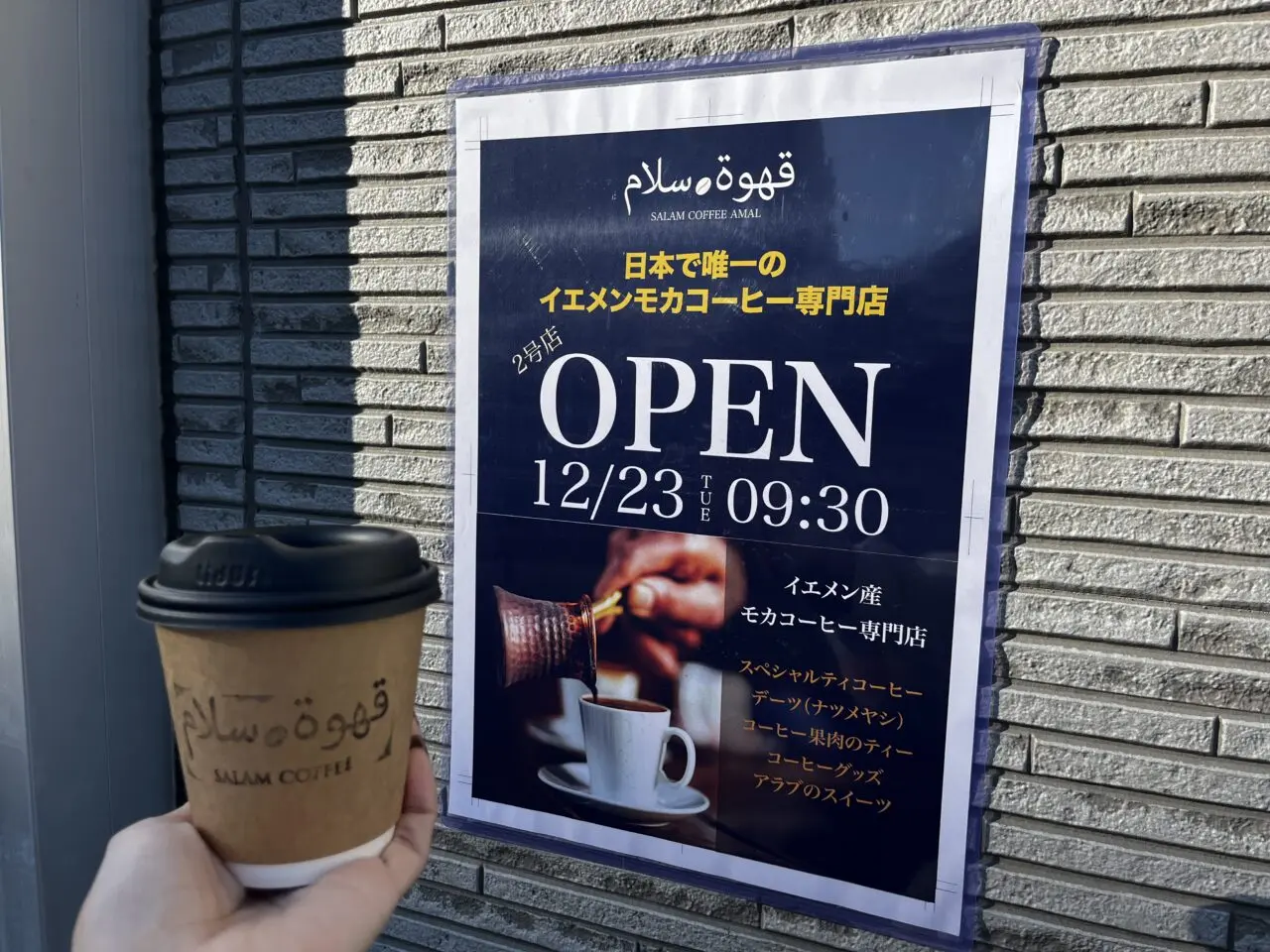 【高槻市】日本で唯一のイエメンモカコーヒー専門店! 芥川町に、「SALAM COFFEE AMAL店」が2025年12月23日(火)9:30にオープン