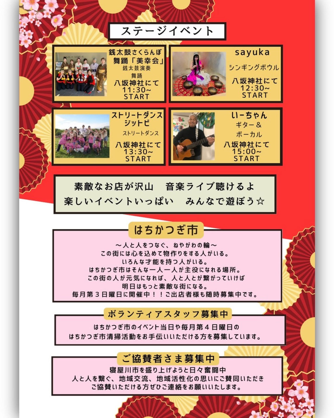【寝屋川市】1月18日は、2026年初のはちかつぎ市開催! ハンドメイド作家や音楽・ダンスなどのアーティストが一堂に会します!