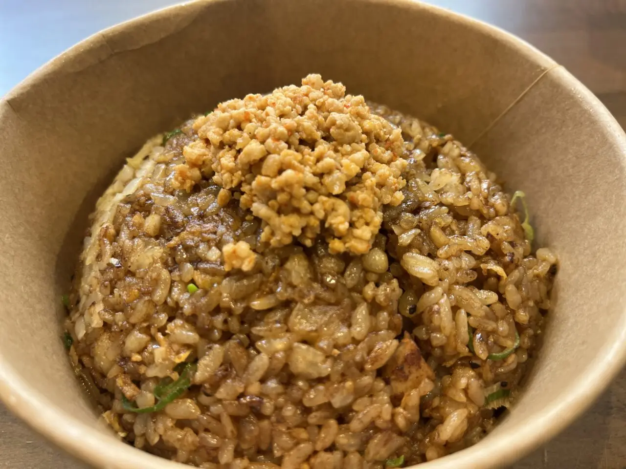 こちらは、「黒チャーハン(旨辛ミンチをトッピング)」です。