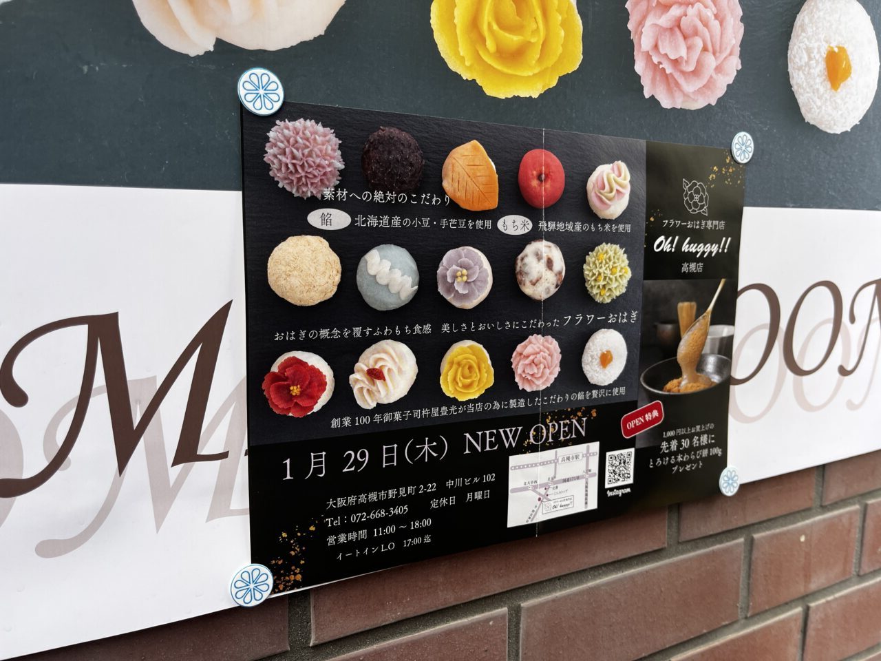 高槻市野見町にフラワーおはぎ専門店の「oh!huggy!!高槻店」が2026年1月29日(木)にオープンしました。