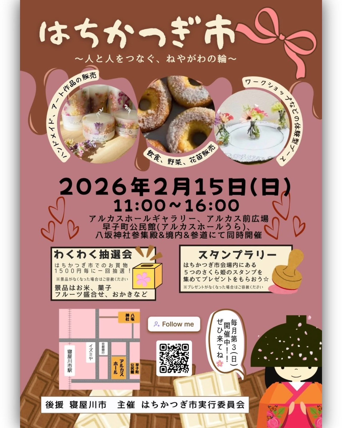 2026年2月15日(日)、手作り市のはちかつぎ市が開催されます。