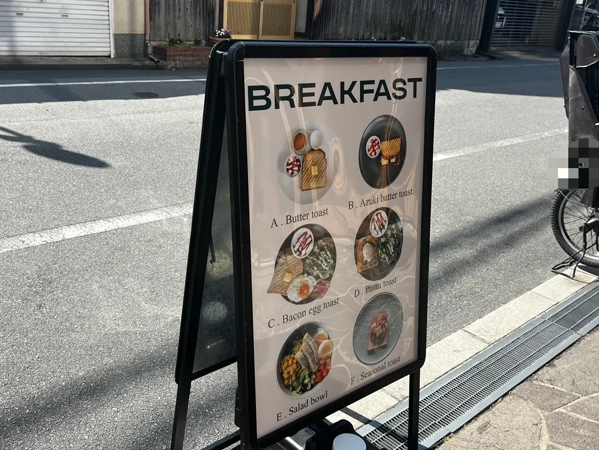「コーヒーなしでは仕事にならない!」という、コーヒーを愛するすべての人に捧げられたお店です。こちらは、モーニングメニューです。コーヒーなどのドリンクメニューに、バタートースト、あずきバタートースト、ベーコンエッグトーストなどをセレクトできるモーニングメニューがありとてもお得ですよ。