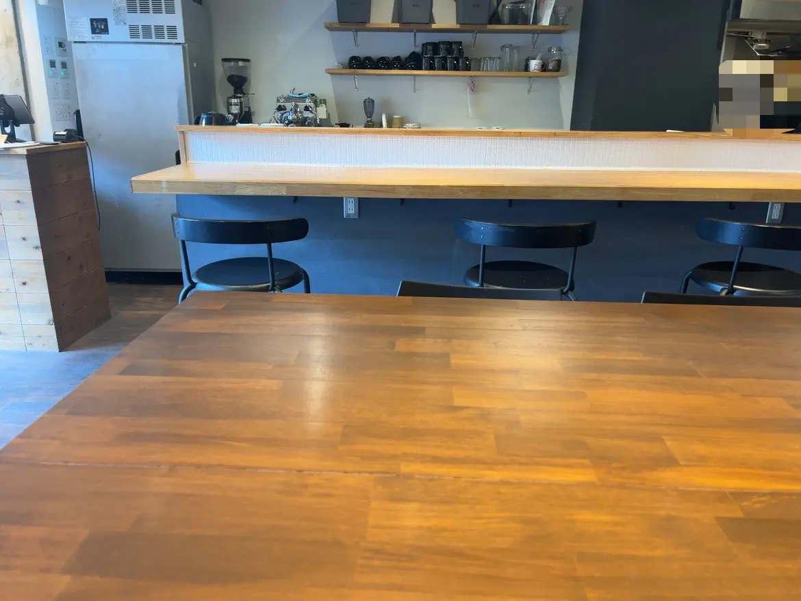 こちらは、店内の様子です。カウンター席やテーブル席があります。店内は、落ち着いた様子で、コーヒーを楽しんだり本を読んだりゆっくり時間を過ごすことができる空間になっています。