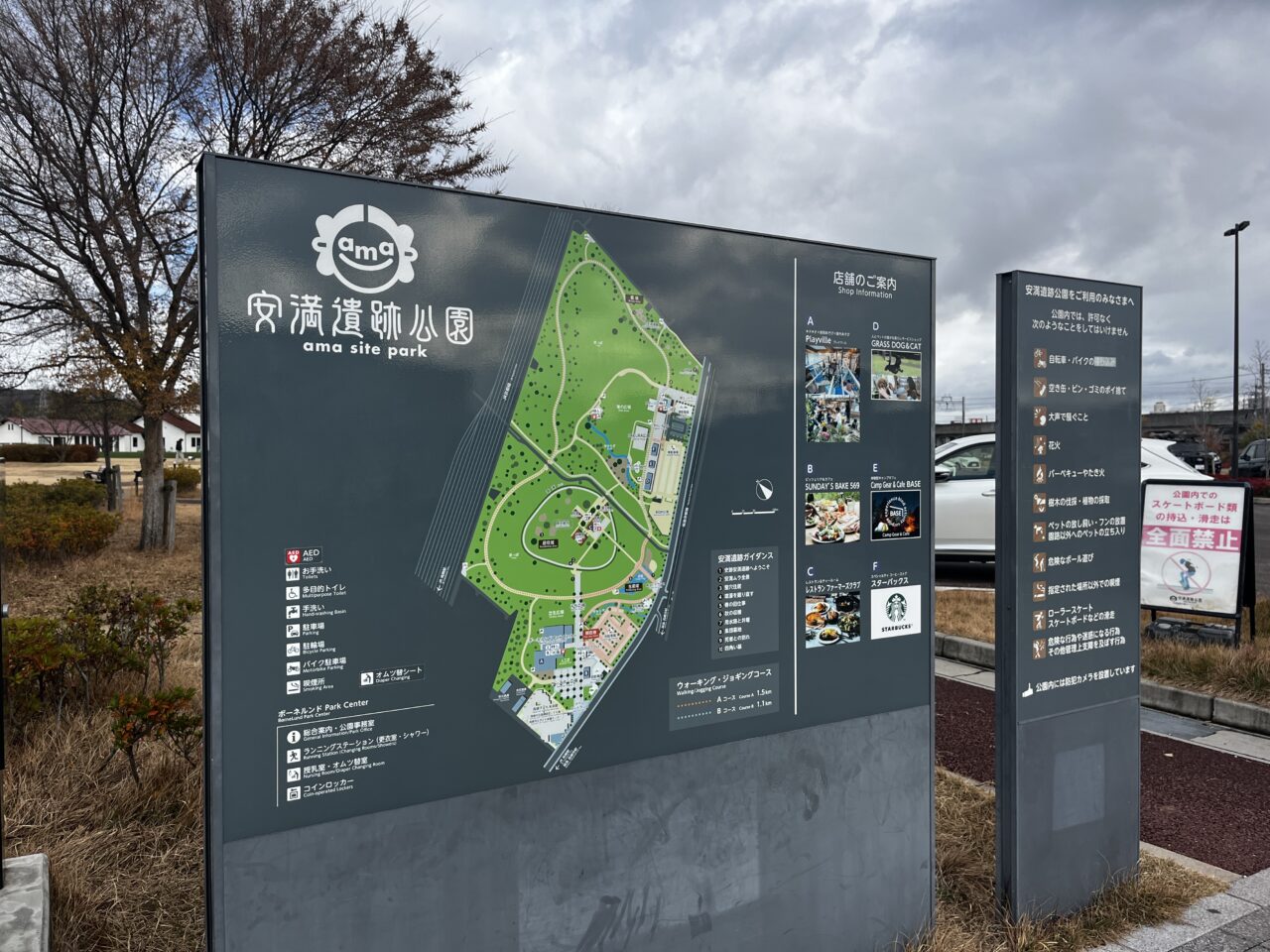駐車場は、坂を少し下ったところにあります。