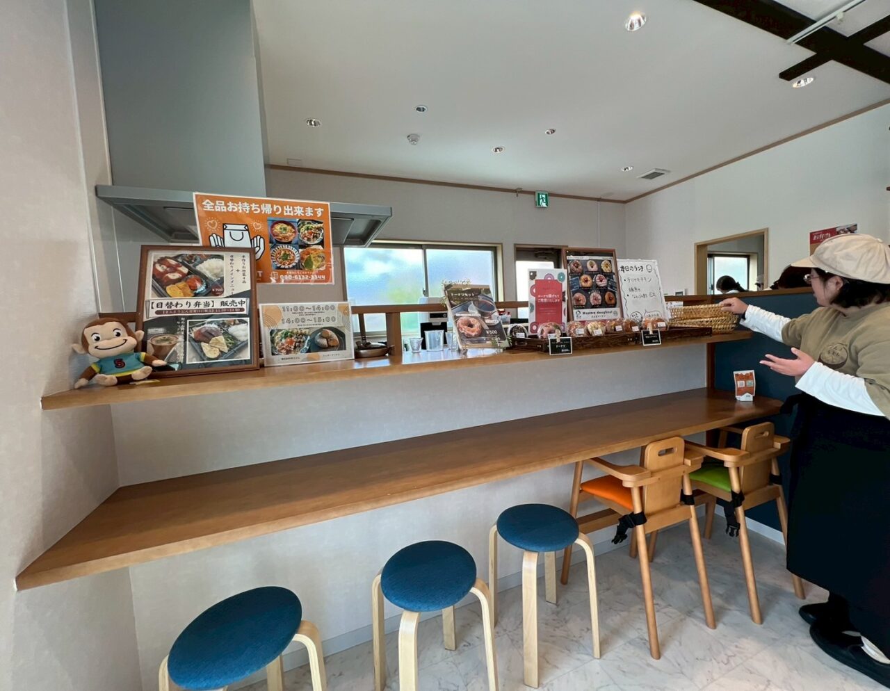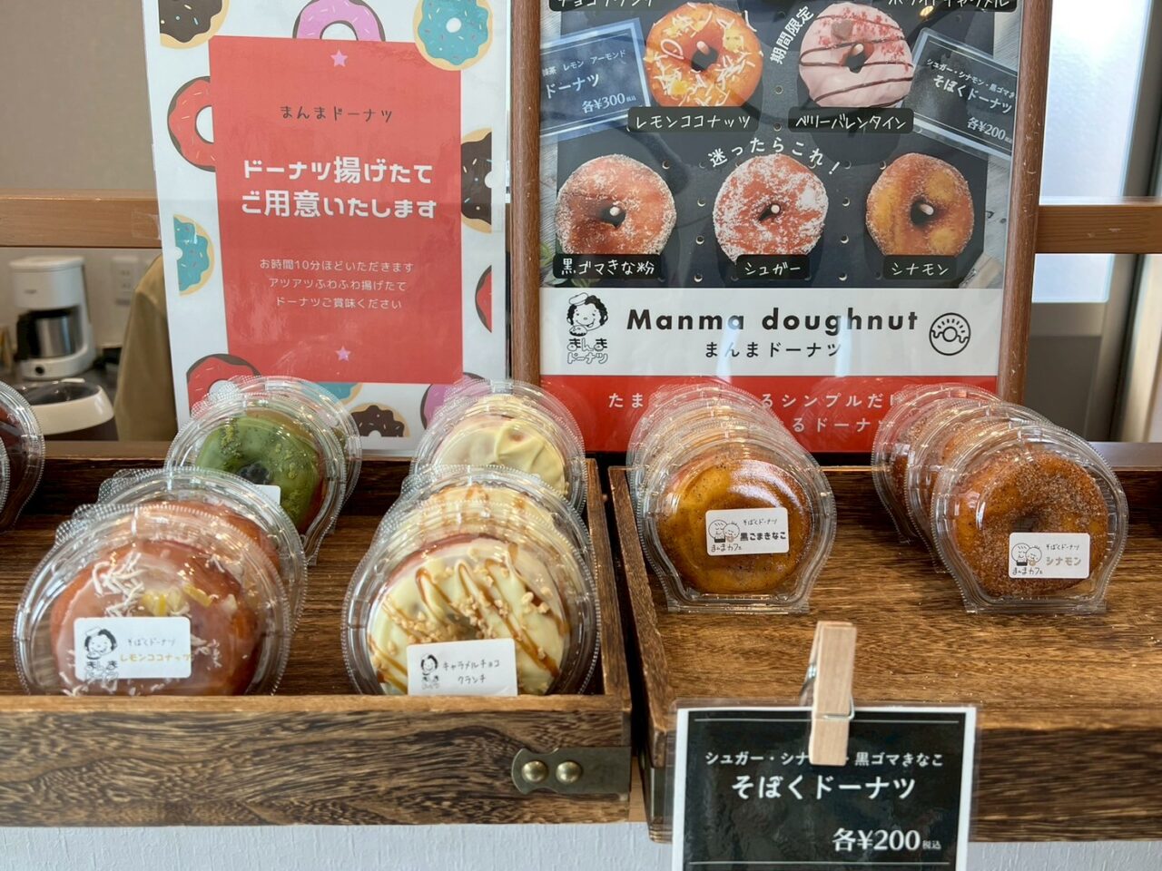 店内はテーブル席とカウンター席がありますが、カウンター前にはドーナツが並んでいました。