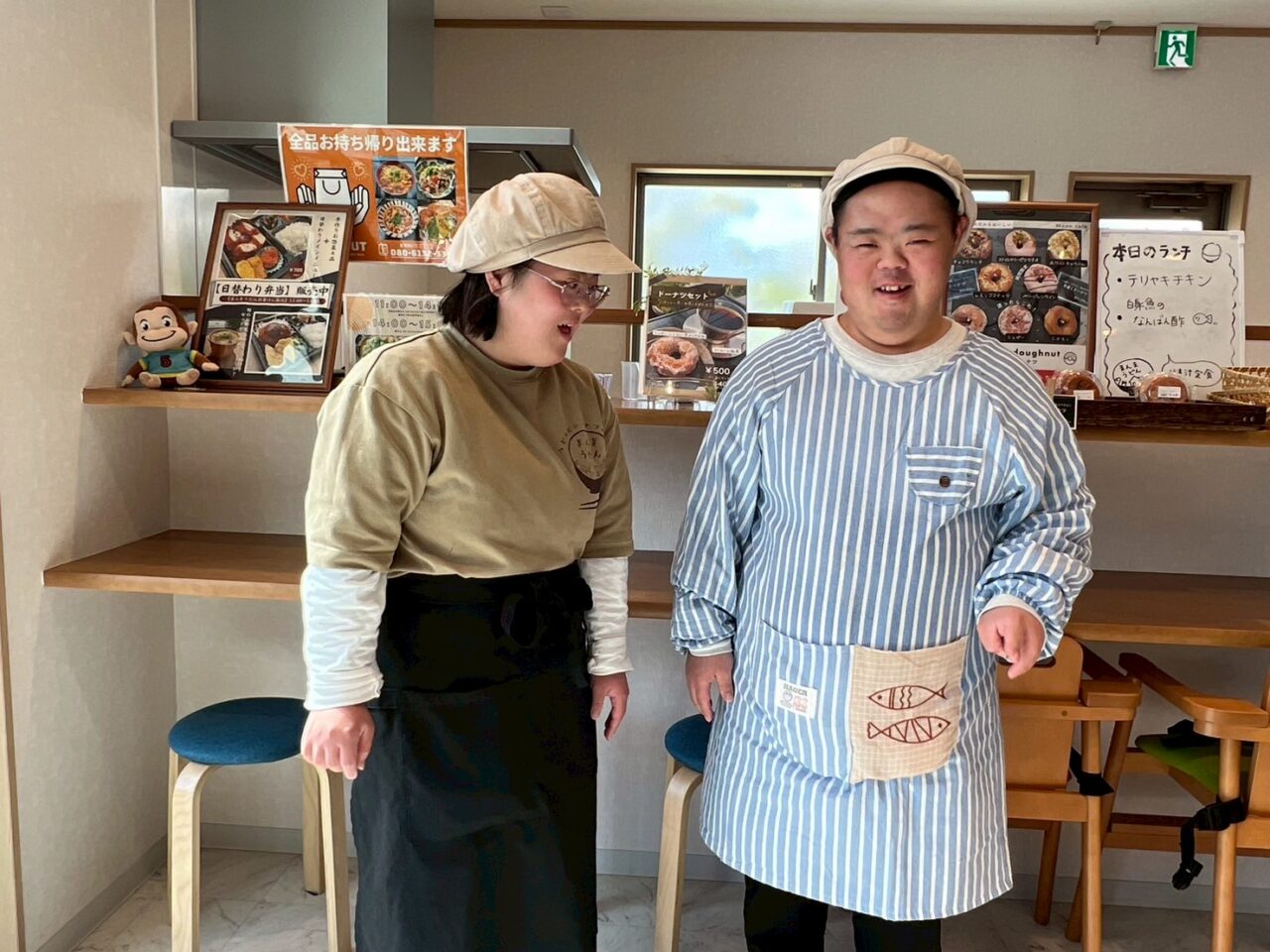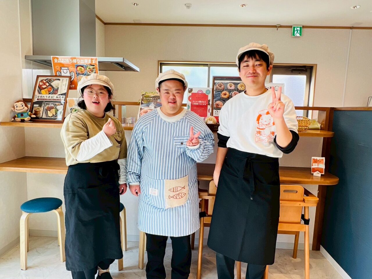 ここでは、株式会社マザーズが運営する「生活介護そらな」「就労継続支援B型まんま」を利用する方たちがマザーズの職員の支援を受けながら、おうどんやドーナツを販売しています。