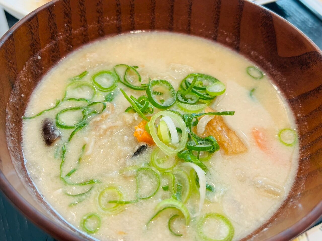 具だくさんのかす汁は、おうどんに変更もできますが、筆者は冬のみの楽しみであるかす汁をいただきました。