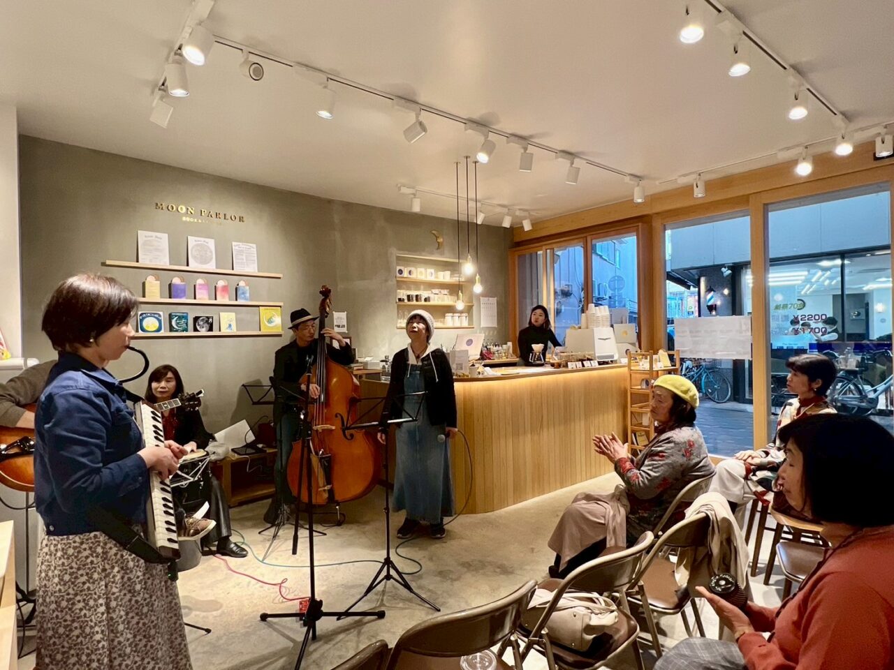 そして、2周年を迎えた「MOON PARLOR」にお祝いの気持ちを込めて、月にちなんだ曲が演奏され、集まった観客とともに和やかでやさしいひとときとなりました。