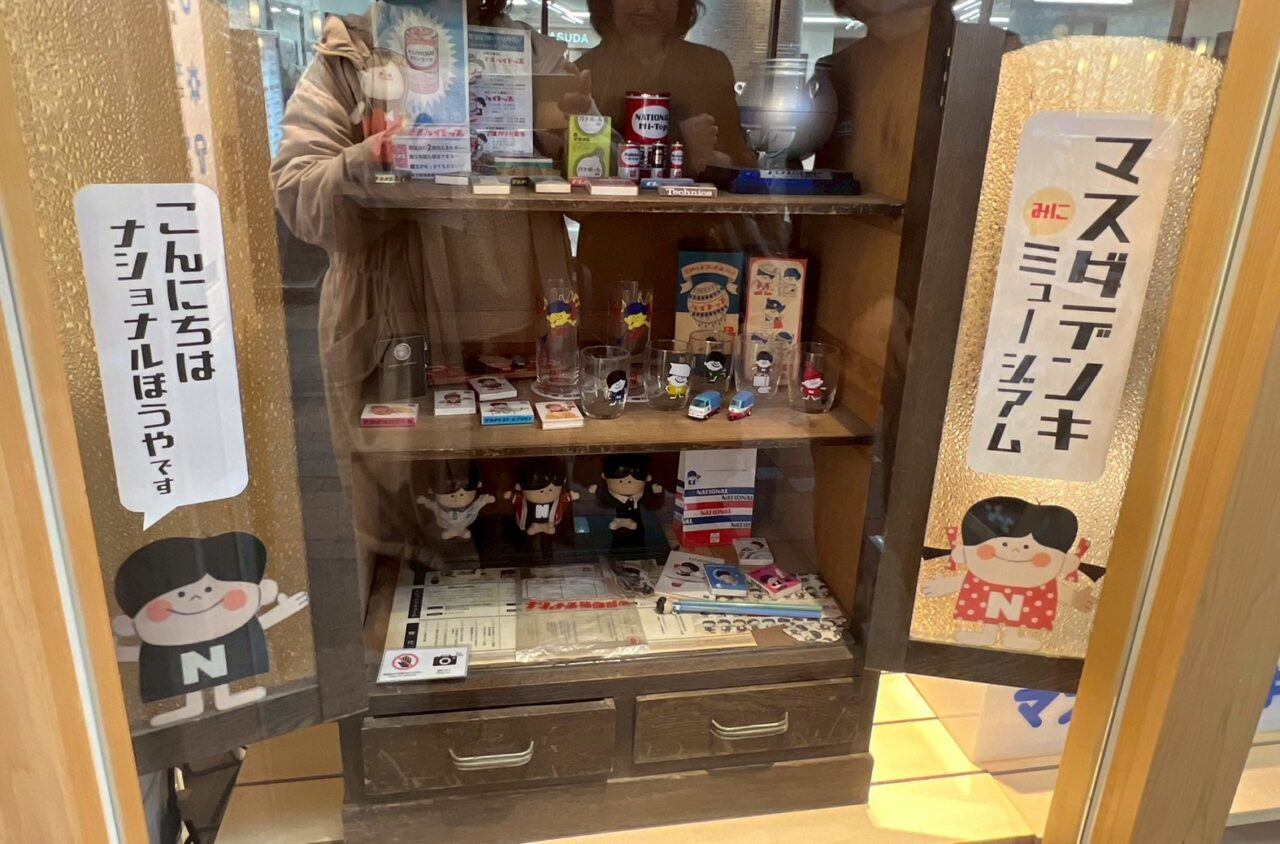 昔懐かしいナショナルグッズをマスダデンキミニミュージアムとして陳列しています。家電が普及し始めた頃からナショナルショップとして、営業を続けてきた証です。
