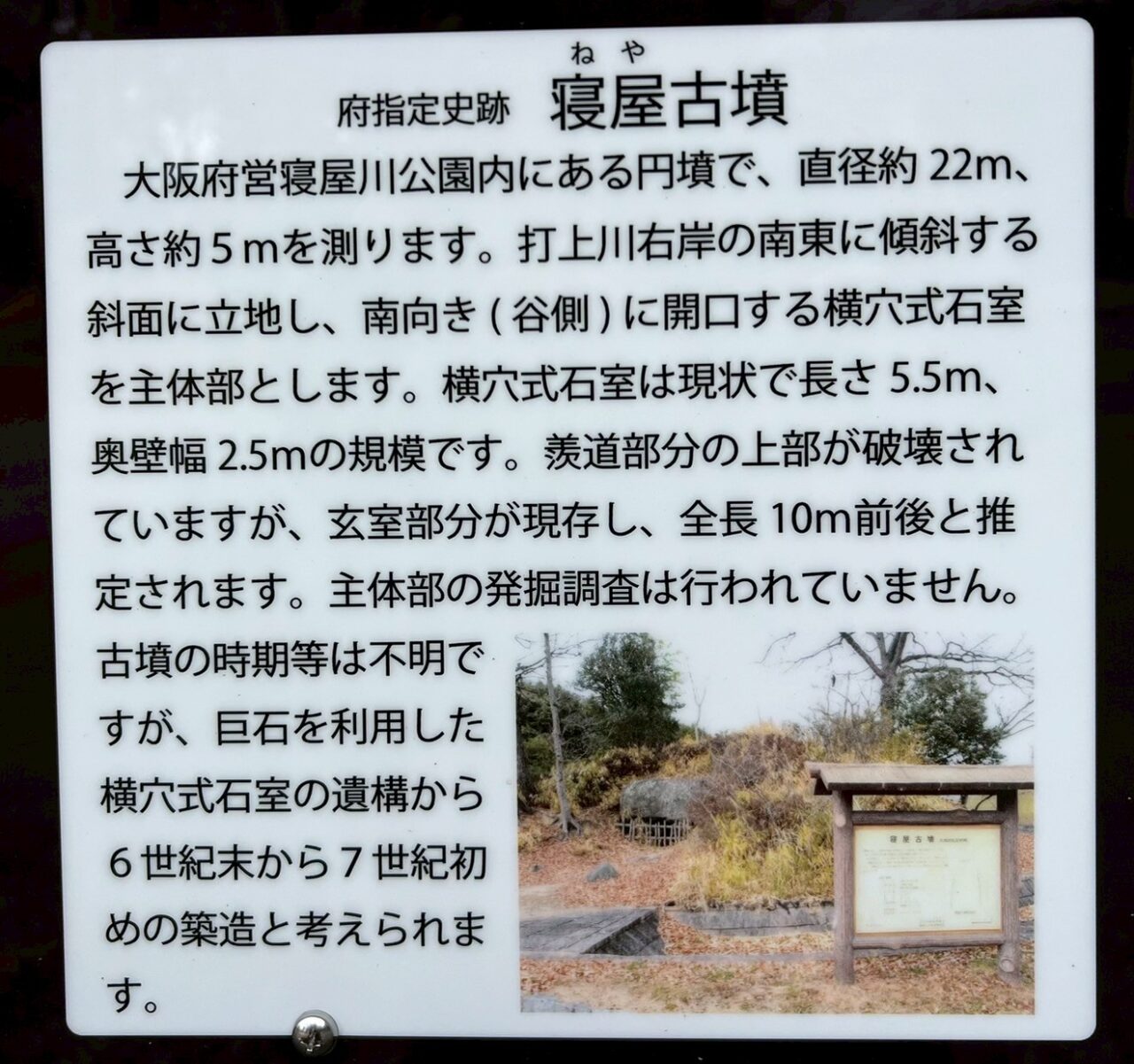 次に紹介されていたのは、府の指定史跡寝屋古墳。