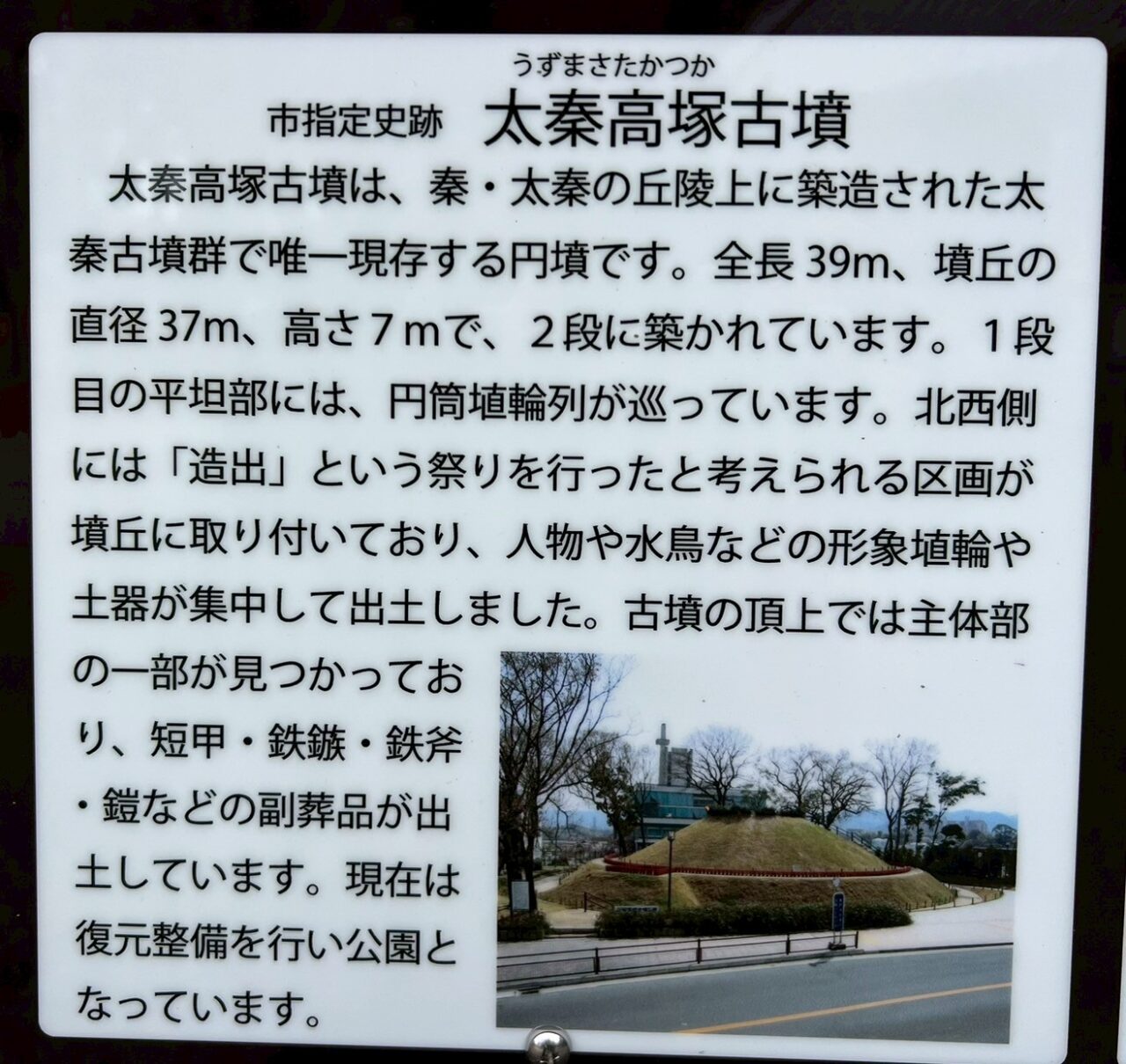 そして市の指定史跡の太秦高塚古墳。