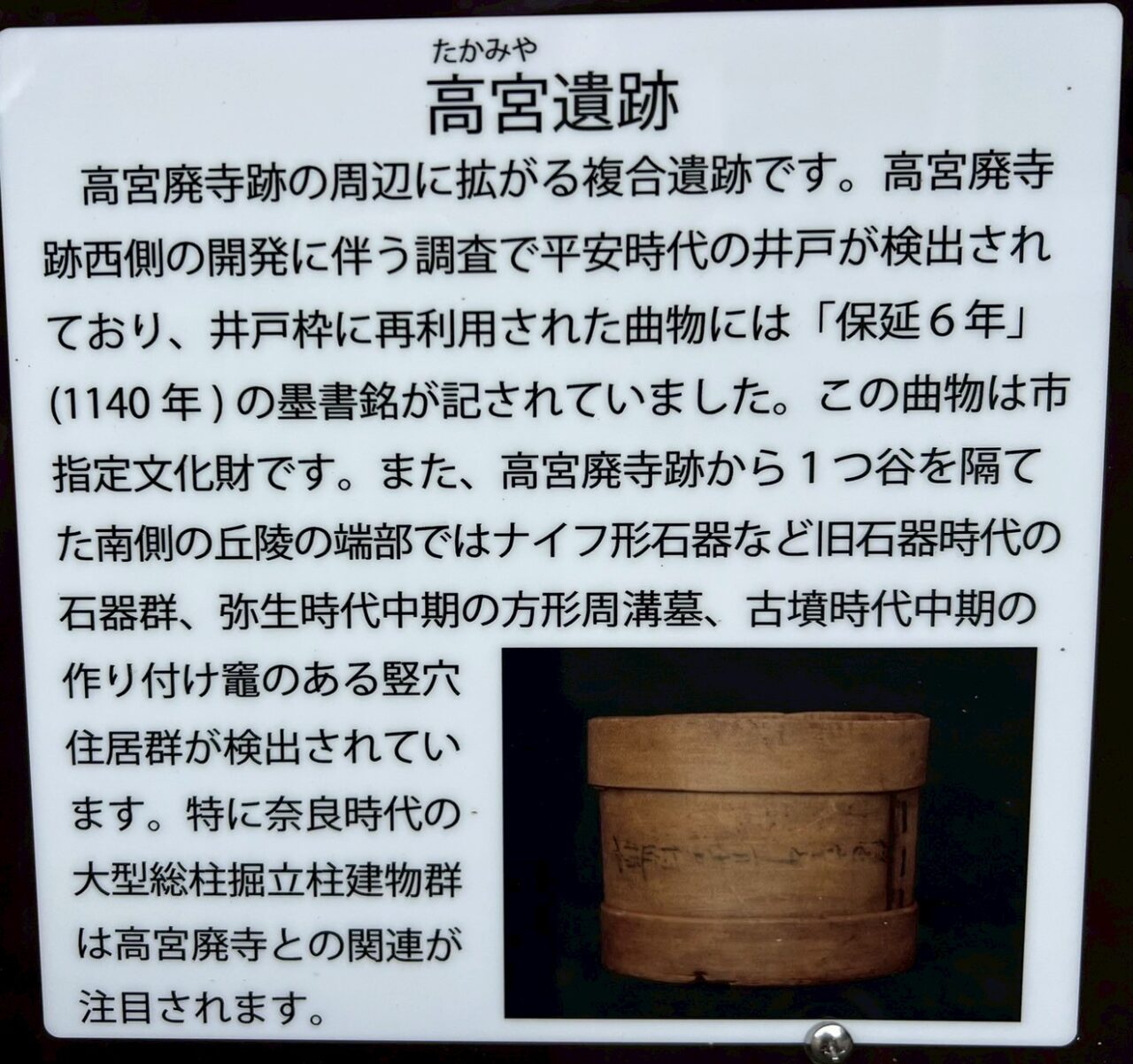 そして、高宮廃寺跡の周辺に広がる複合遺跡高宮遺跡です。