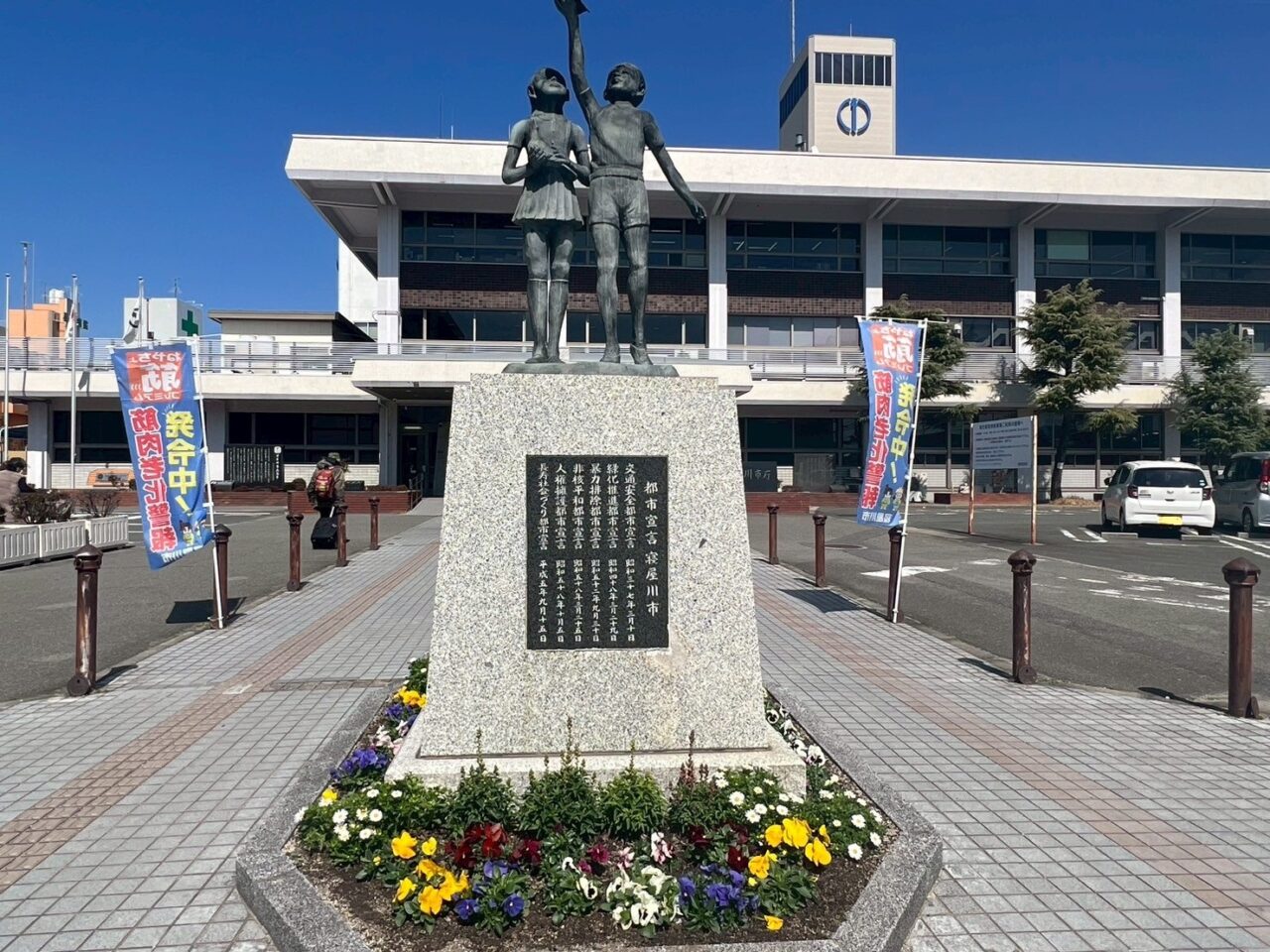 この建物は、1964年(昭和39年)に完成した、3階建ての市役所本庁舎です。