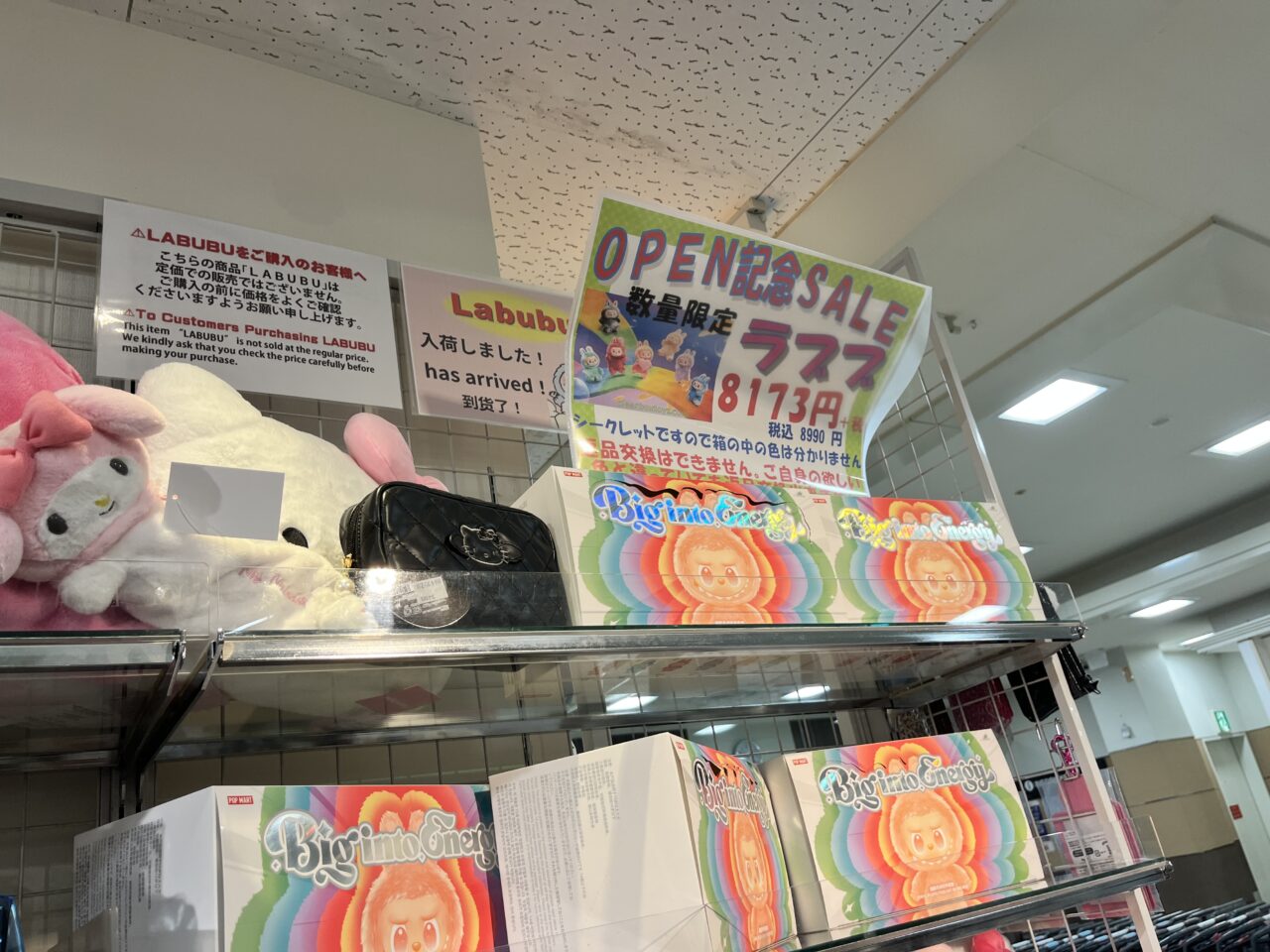 オープン記念として、数量限定SALEで「LABUBU(ラブブ)」が販売されていました。こちらに掲示されていたお知らせによりますと、「こちらの商品 LABUBU は定価での販売ではございません。ご購入の前に価格をよくご確認くださいますようお願い申し上げます。」とのことですので購入を検討されている方はご注意くださいね。